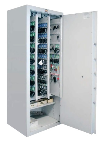 Dem Umgang mit Schlüsseln kommt in der Automobilbranche eine besondere Bedeutung zu. Neben Gebäude- und Büroschlüsseln müssen vor allem auch die Fahrzeugschlüssel sicher verwahrt werden. Es gilt zum einen zu verhindern, dass Autodiebe an Originalschlüssel gelangen. Zum anderen muss auch der interne Umgang mit Fahrzeugschlüsseln effizient und versicherungskonform organisiert sein. Für die besonderen Anforderungen von Autohäusern und Autovermietungen bieten wir spezielle Sicherungssysteme und Schlüsseltresore für eine perfekte Schlüsselorganisation in vielen Größen, Ausführungen und Sicherheitsstufen. Durch flexibel einzurichtende Schlüsselhakenleisten, in die die Schlüsselhaken von der Höhe und dem seitlichen Abstand her variabel eingehängt werden können, lassen sich auch große Schlüssel und Transponder problemlos im Tresor unterbringen.