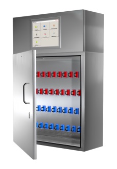 Elektronisches Schlüsselverwaltungssystem für die optimale Schlüssel Kontrolle. Jeder Schlüssel wird an einem Schlüsselträger befestigt und elektromechanisch im System verriegelt. Mastersystem mit kompletter Systemsteuerung, Datenbank und weitreichender Funktionalität: